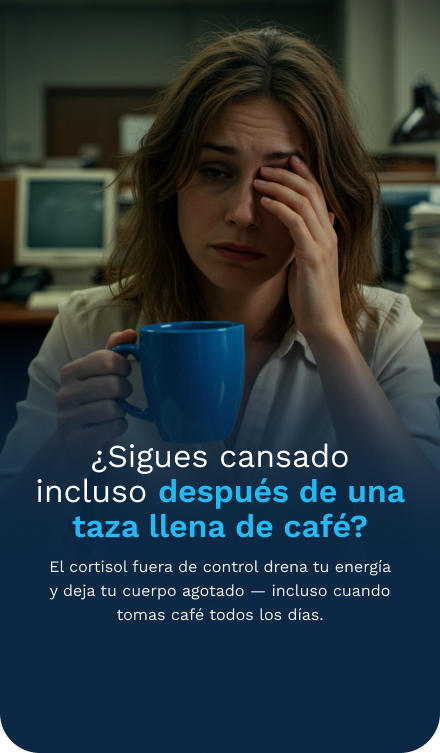 El cortisol, la hormona del estrés, cuando está alto mantiene tu cuerpo en estado de alerta todo el tiempo. Eso hace que despiertes cansado, sin disposición y sin fuerzas para afrontar el día. Por eso, aunque tomes café, la fatiga continúa y nada parece resolver.